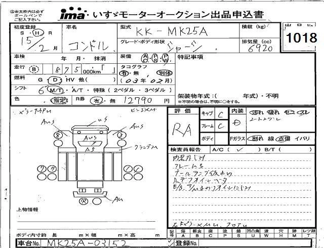 Год выпуска2003 Пробег 875 000 км КузовMK25A Комплектация CHASSIS