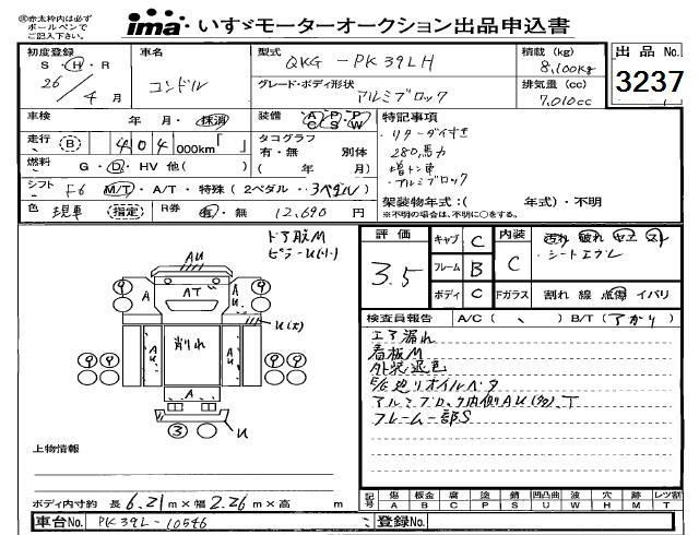Статус выставлен на аукцион Лот 3237 Аукцион Isuzu Kobe Дата аукциона 30.01.2026