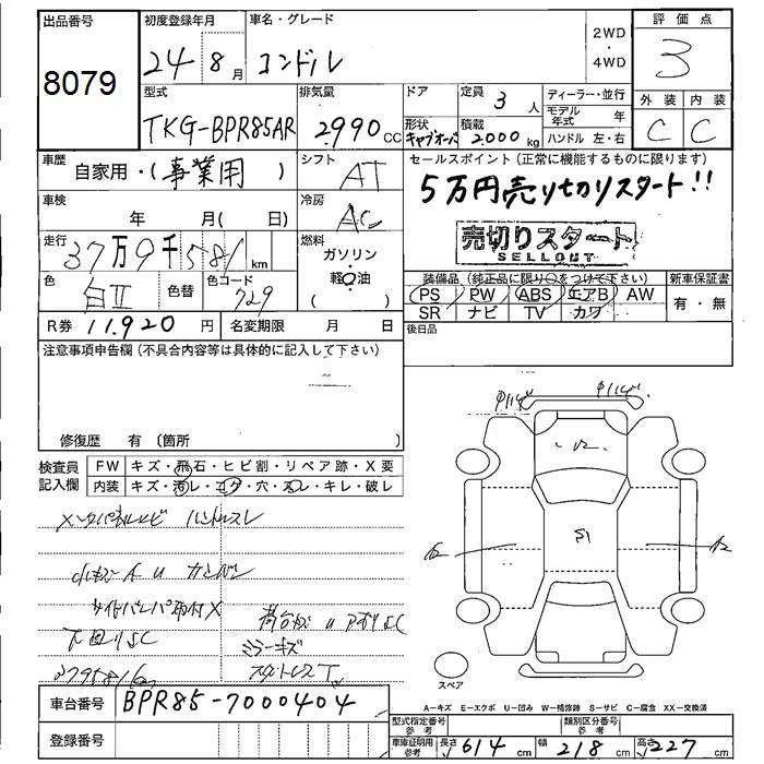 Год выпуска2012 Пробег 380 000 км КузовBPR85AR