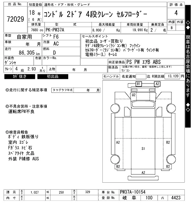 Год выпуска2006 Пробег 86 000 км КузовPW37A Комплектация LOADING. CRANE 4 -STEP