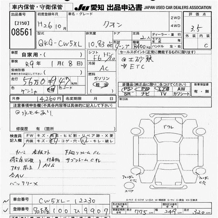 Статус не продан Лот 8561 Аукцион JU Aichi Дата аукциона 19.03.2026