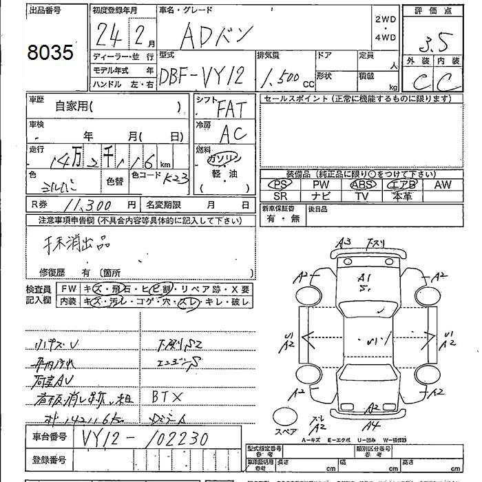 NISSAN AD VAN 2012 г., лот № 8035