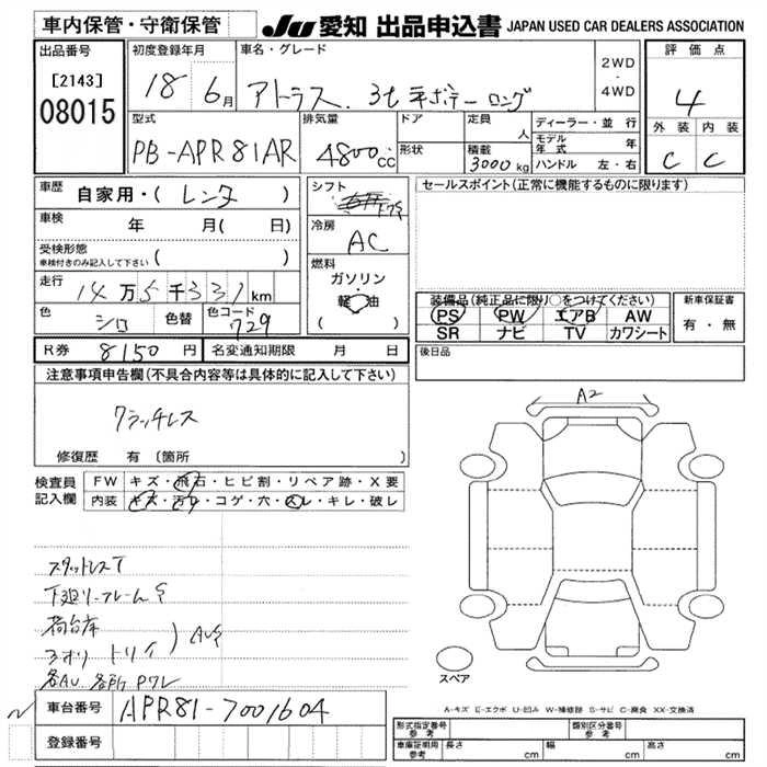 Статус выставлен на аукцион Лот 8015 Аукцион JU Aichi Дата аукциона 29.01.2026