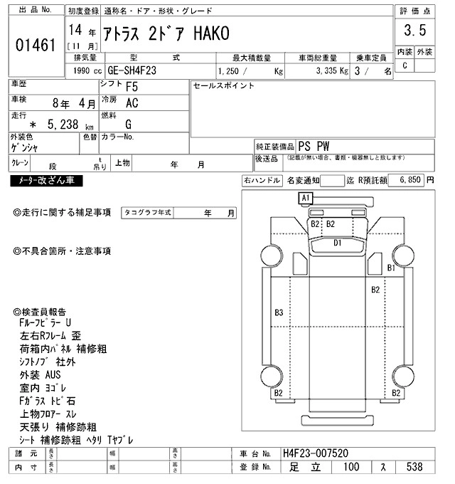 Статус выставлен на аукцион Лот 1461 Аукцион ARAI Oyama VT Дата аукциона 31.01.2026