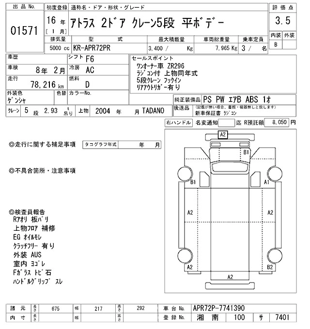 Год выпуска2004 Пробег 78 000 км КузовAPR72PR Комплектация COMMON. CRANE 5 -STEP