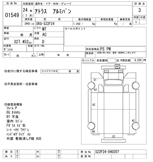 Год выпуска2012 Пробег 327 000 км КузовSZ2F24 Комплектация ALUMINUM VAN