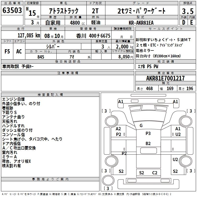 Статус выставлен на аукцион Лот 63503 Аукцион TAA Shikoku Дата аукциона 17.03.2026
