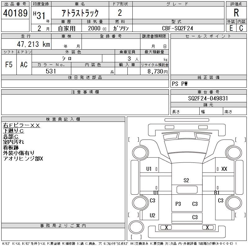 Год выпуска2019 Пробег 47 000 км КузовSQ2F24
