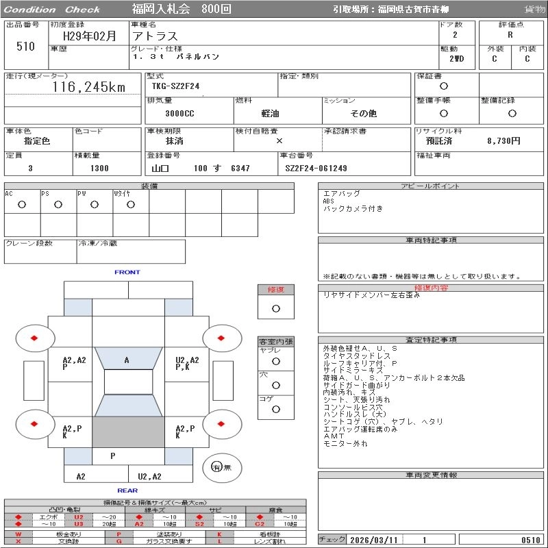 NISSAN ATLAS 2017 г., лот № 510
