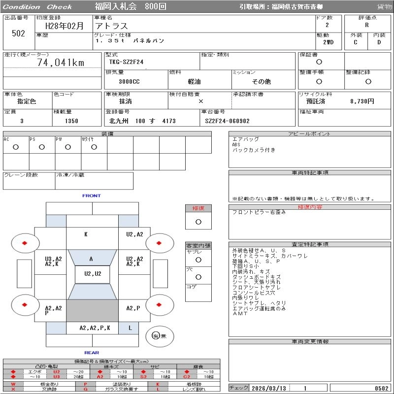 Статус выставлен на аукцион Лот 502 Аукцион ORIX Fukuoka Дата аукциона 17.03.2026