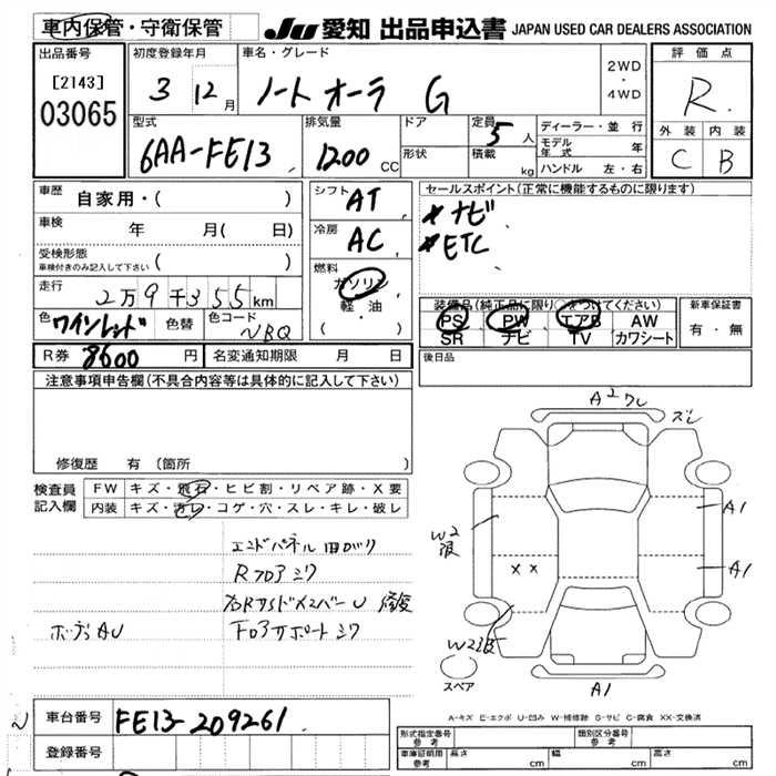 Статус выставлен на аукцион Лот 3065 Аукцион JU Aichi Дата аукциона 29.01.2026