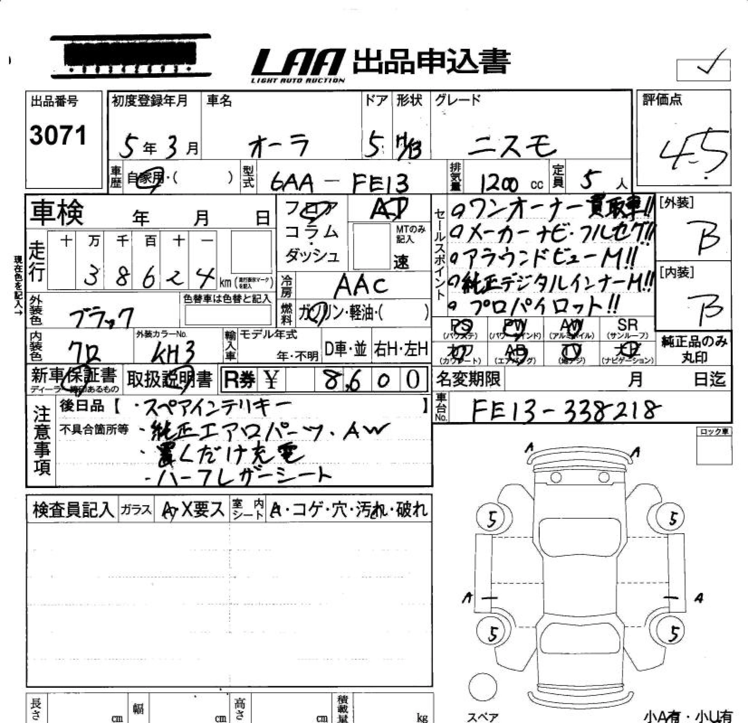 Статус выставлен на аукцион Лот 3071 Аукцион LAA Okayama Дата аукциона 30.01.2026