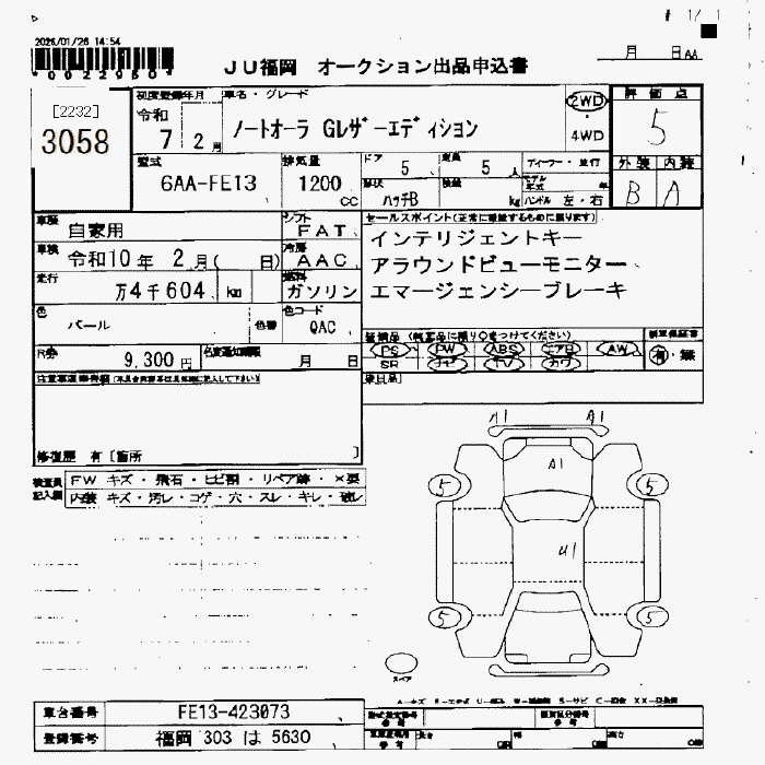 Статус не продан Лот 3058 Аукцион JU Fukuoka Дата аукциона 30.01.2026