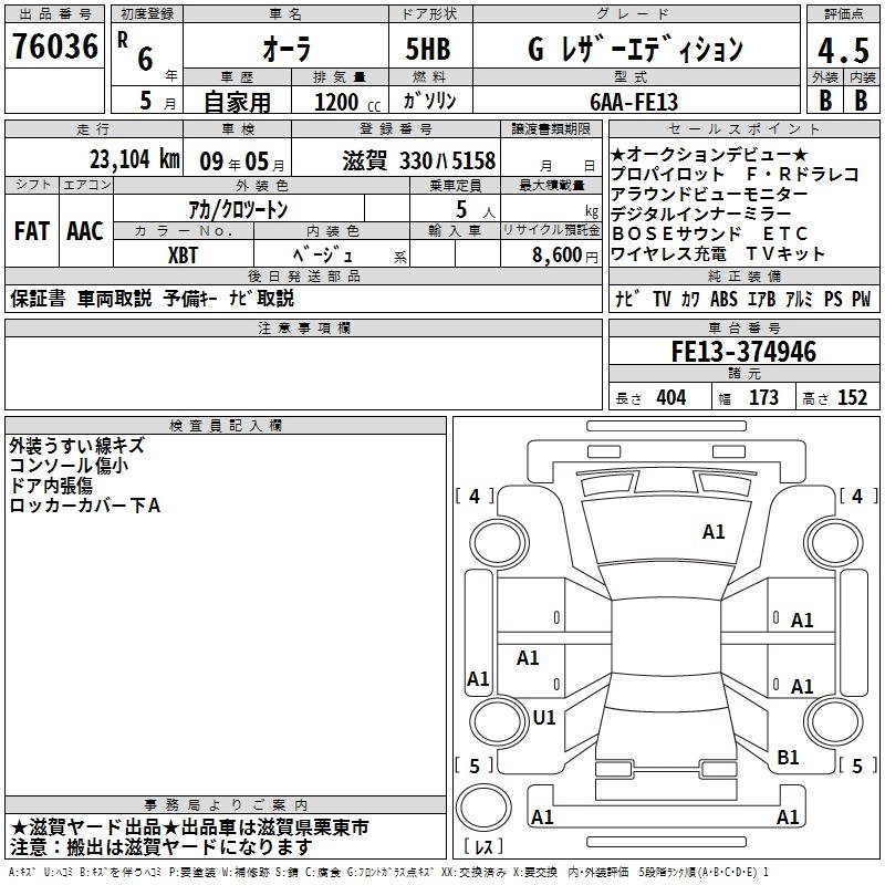 NISSAN AURA 2024 г., лот № 76036