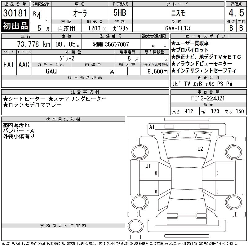 NISSAN AURA 2022 г., лот № 30181