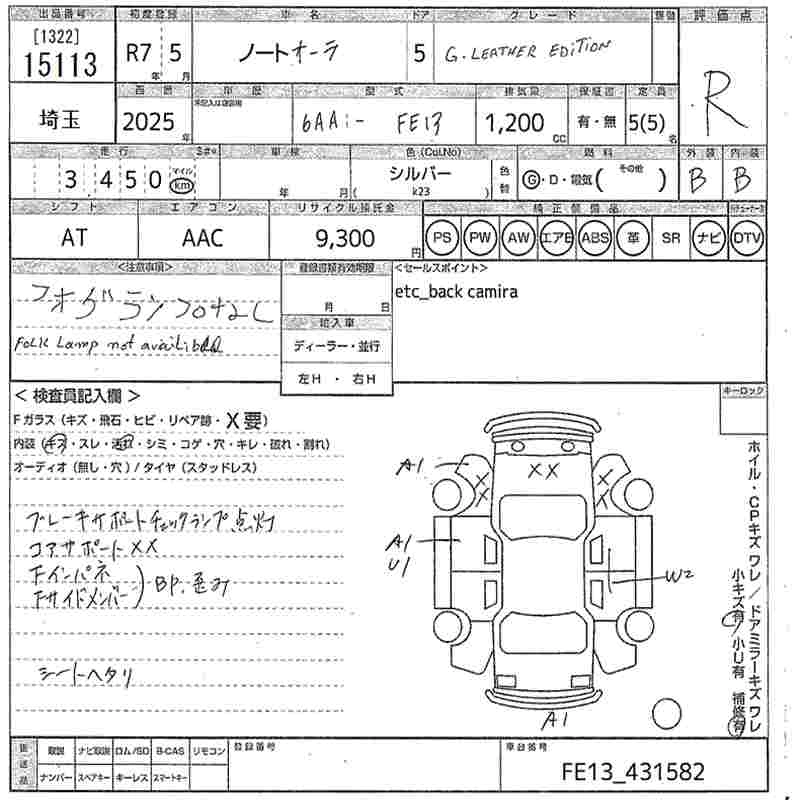 NISSAN AURA 2025 г., лот № 15113