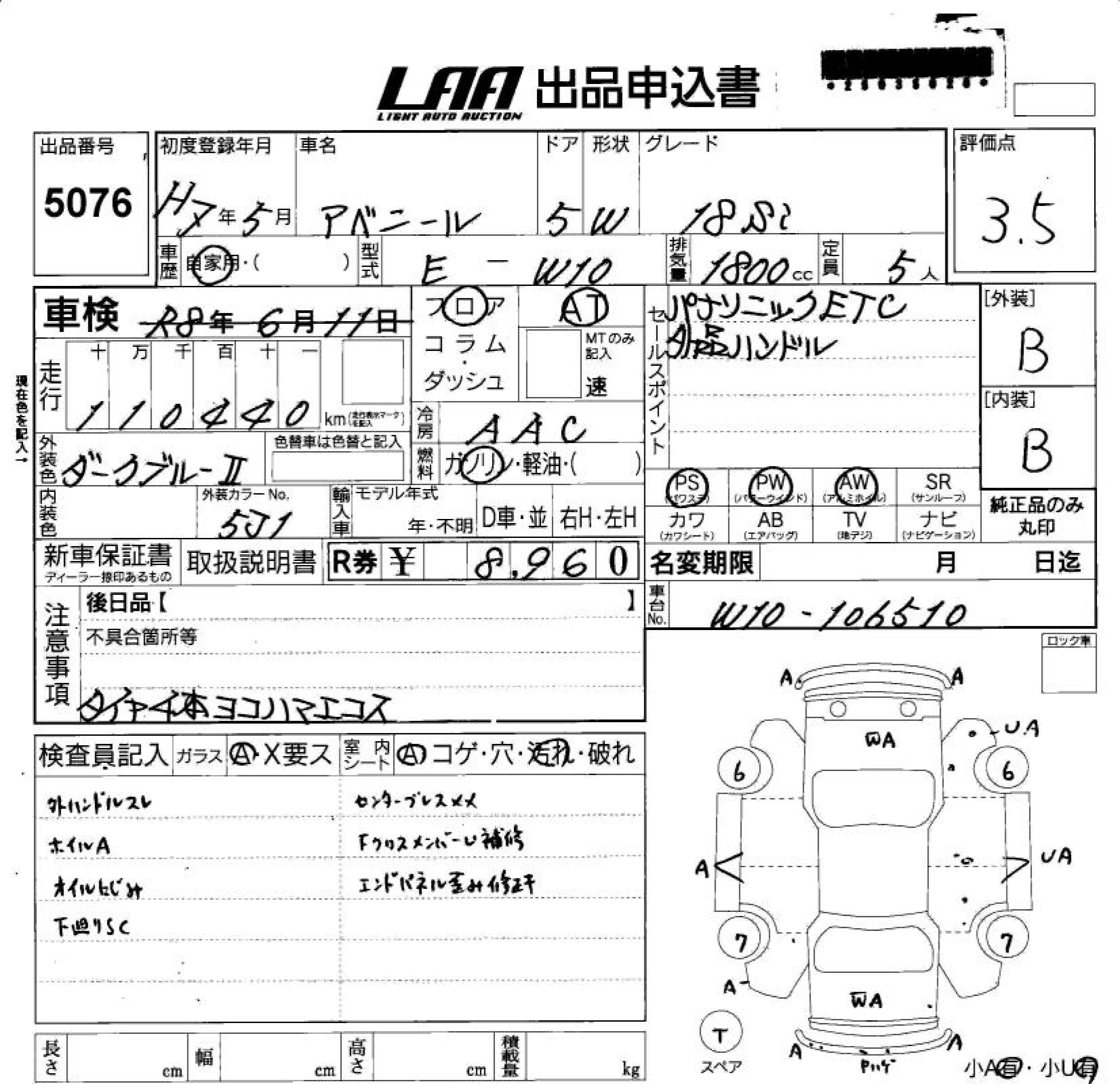 NISSAN AVENIR 1995 г., лот № 5076
