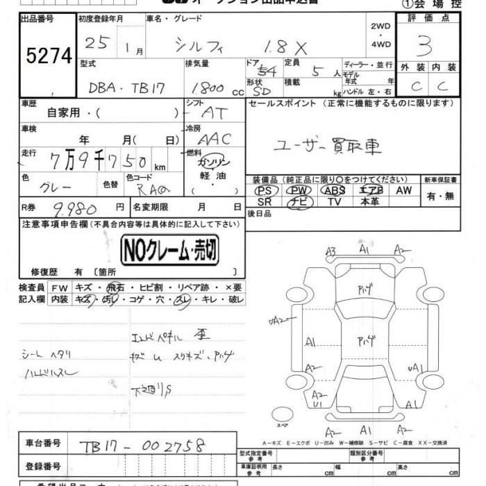 Статус выставлен на аукцион Лот 5274 Аукцион JU Chiba Дата аукциона 30.01.2026