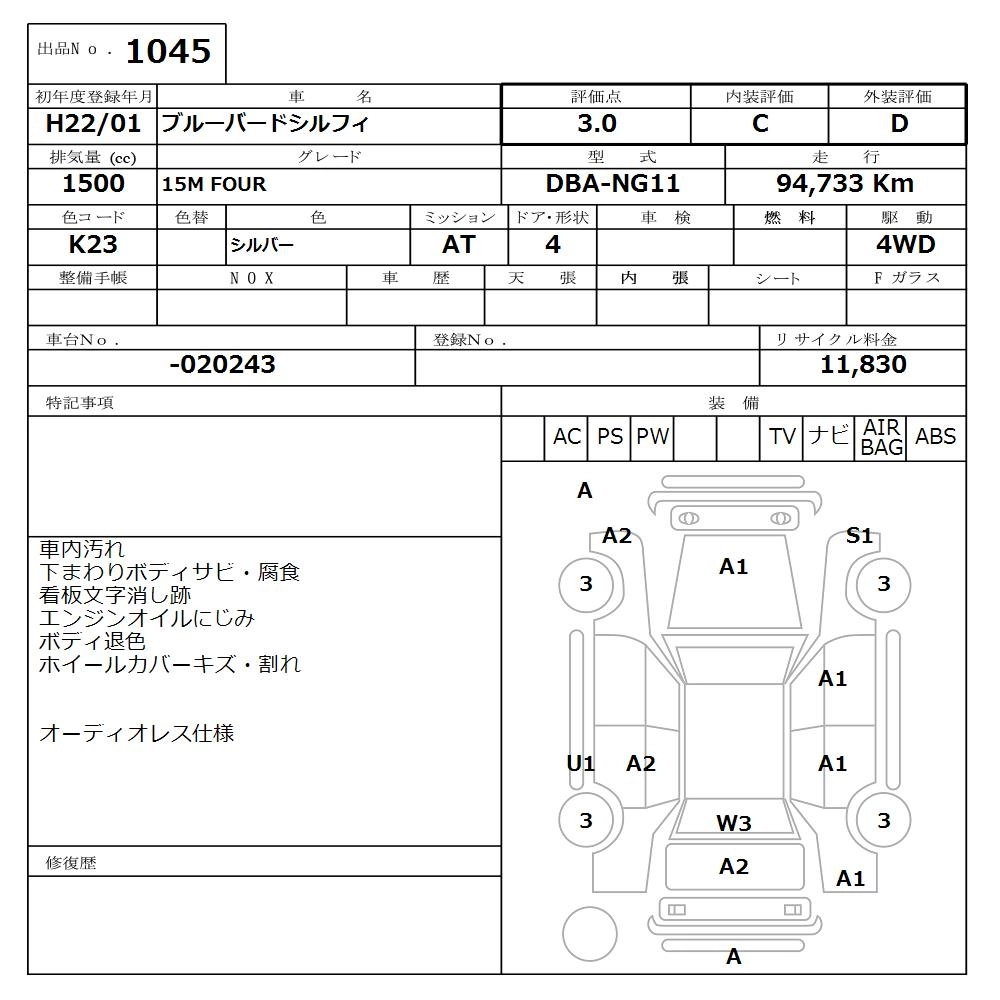 | 15M FOUR | DBA-NG11 | HR15DE | Full-time 4WD | 4AT | 1498cc | 109ps(80kW)/6000rpm | AИ-92 | 2 116 800 | |
