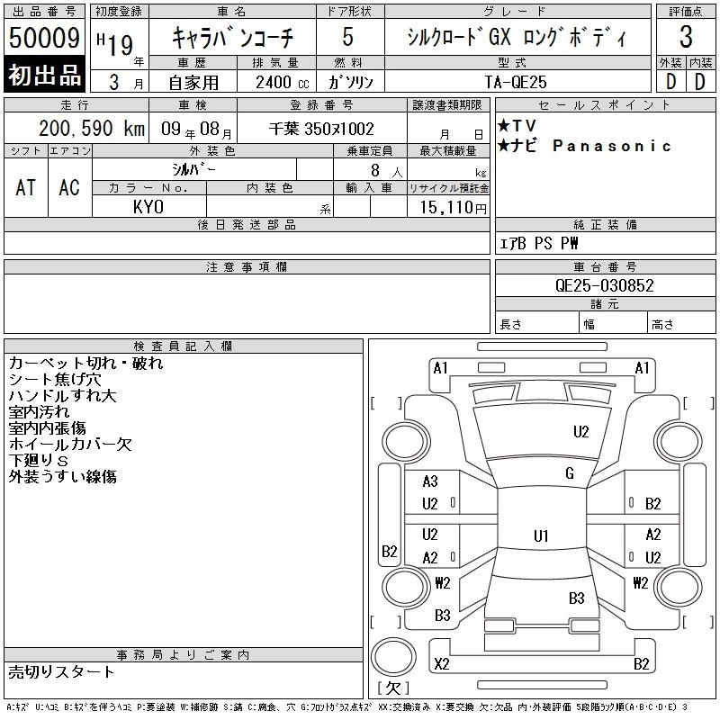 | SILKROAD VX | CBA-SE25 | QR25DE | FR | 5AT | 2488cc | 147ps(108kW)/5600rpm | AИ-92 | 2 863 350 | |
