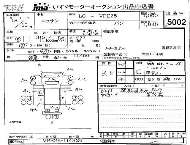 NISSAN CARAVAN 2006 г., лот № 5002