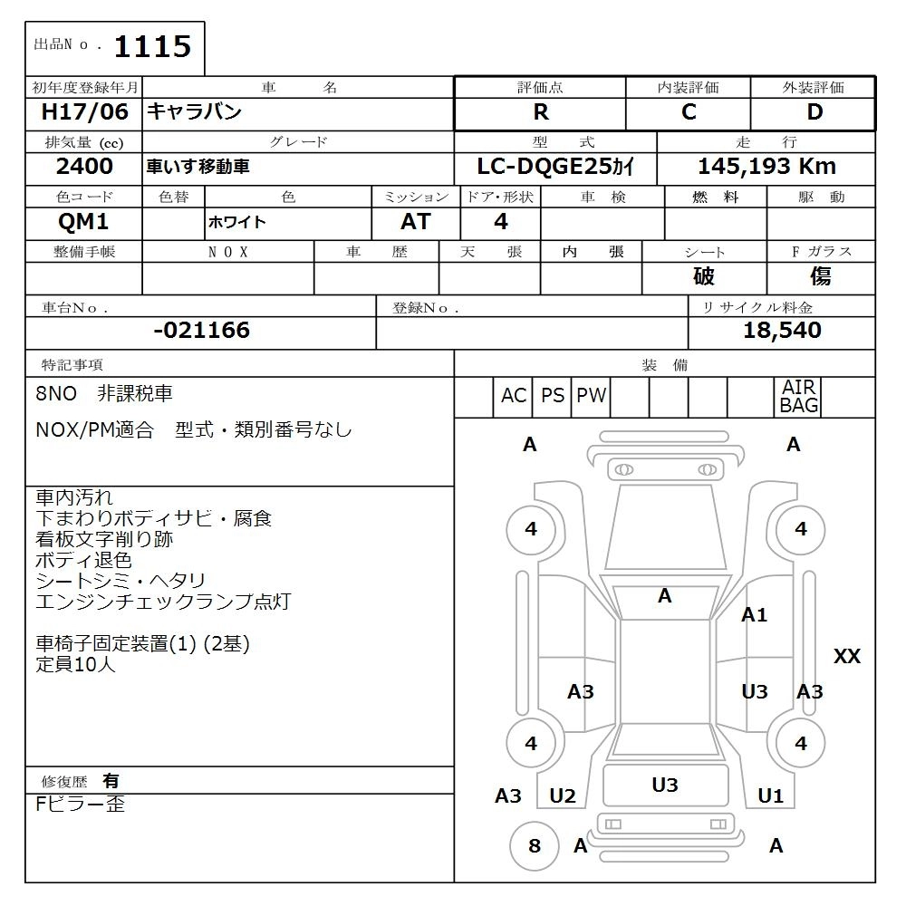 NISSAN CARAVAN 2005 г., лот № 1115