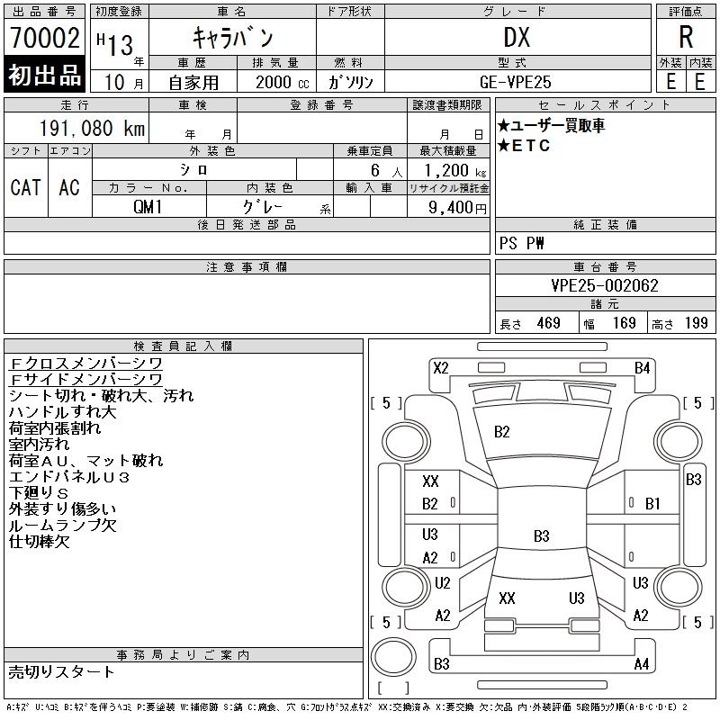 NISSAN CARAVAN 2001 г., лот № 70002