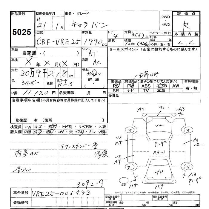 NISSAN CARAVAN 2009 г., лот № 5025