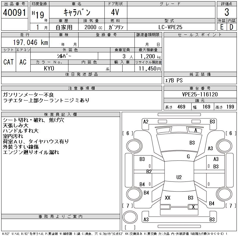 NISSAN CARAVAN 2007 г., лот № 40091