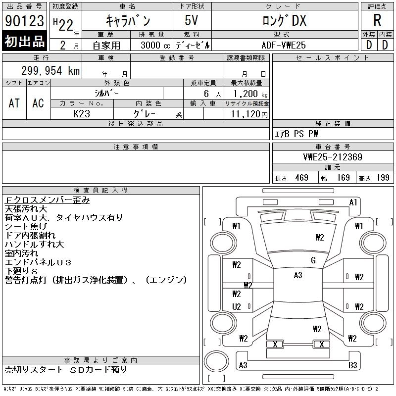 NISSAN CARAVAN 2010 г., лот № 90123
