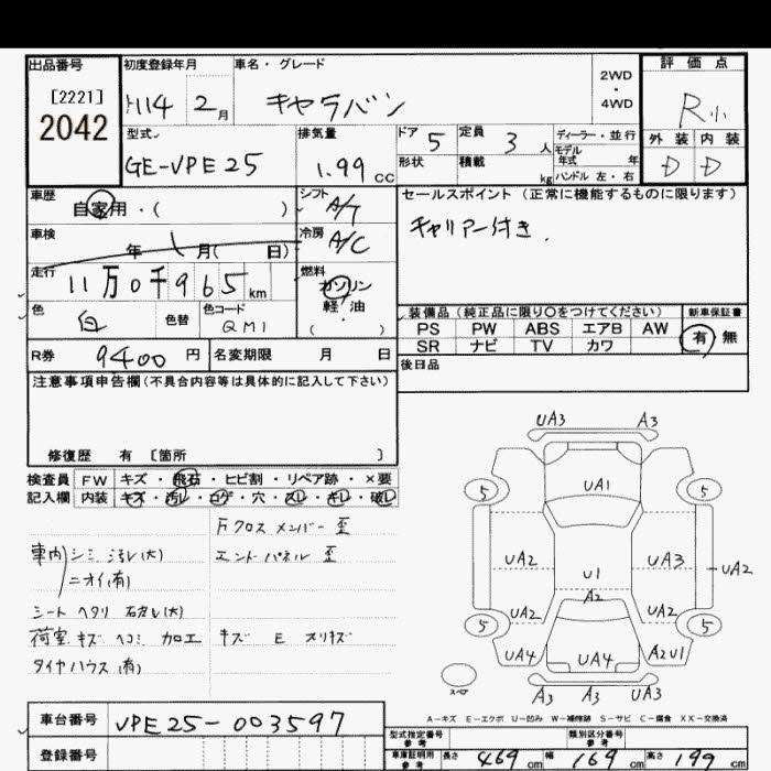 NISSAN CARAVAN 2002 г., лот № 2042