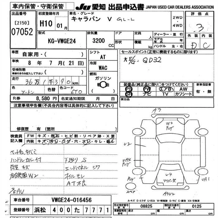 NISSAN CARAVAN 1998 г., лот № 7052