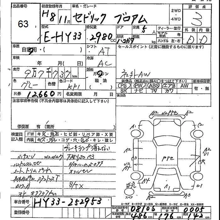 | BROUGHAM VIP | E-HY33 | VQ30DET | FR | 4AT | 2987cc | 270ps(199kW)/6000rpm | AИ-95 | 4 960 000 | |