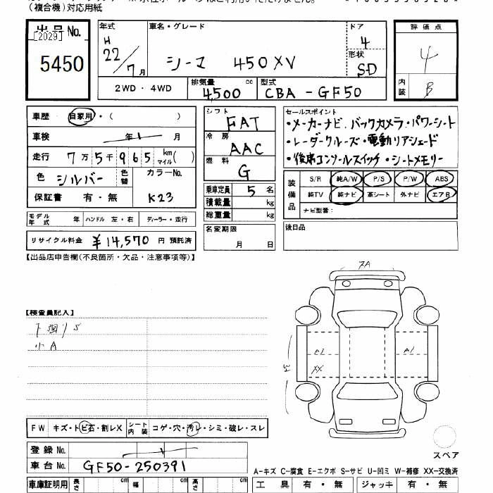 Год выпуска2010 Пробег 75 000 км КузовGF50 Комплектация450XV