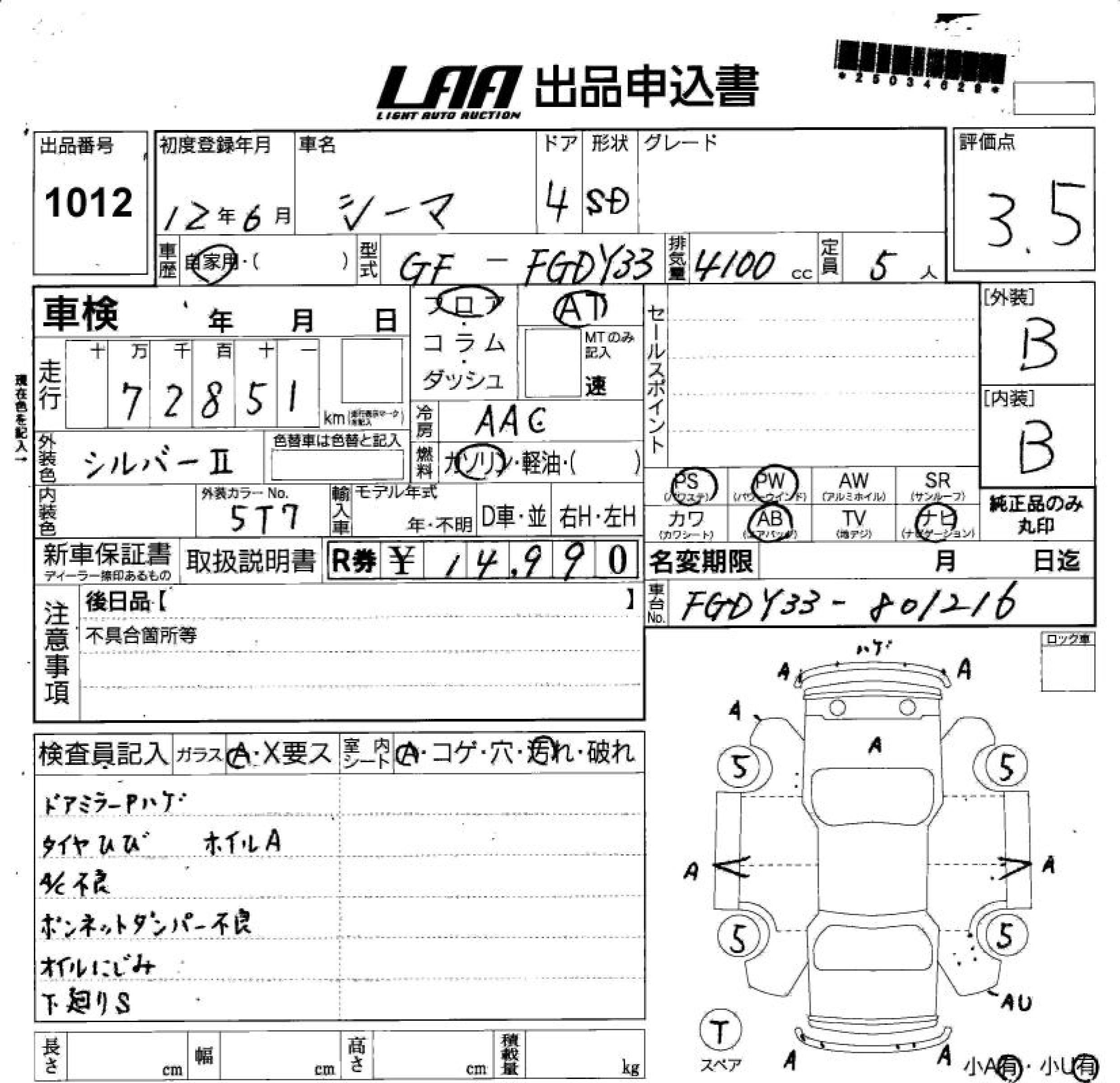 NISSAN CIMA 2000 г., лот № 1012