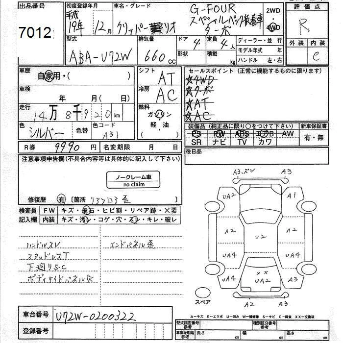 | G | ABA-U71W | 3G83(インタークーラーターボ) | FR | 4AT | 657cc | 64ps(47kW)/6000rpm | AИ-92 | 1 516 200 | |