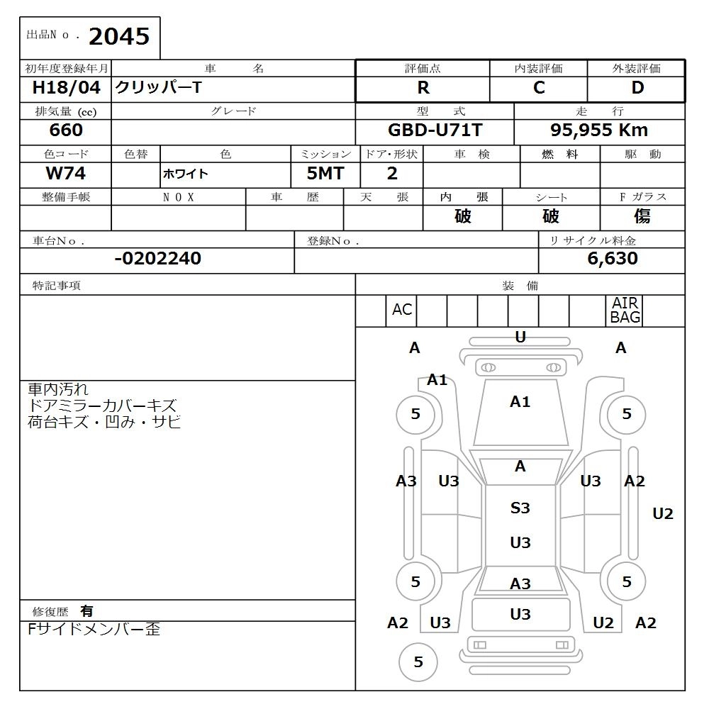 Статус выставлен на аукцион Лот 2045 Аукцион Nissan Osaka Дата аукциона 16.03.2026