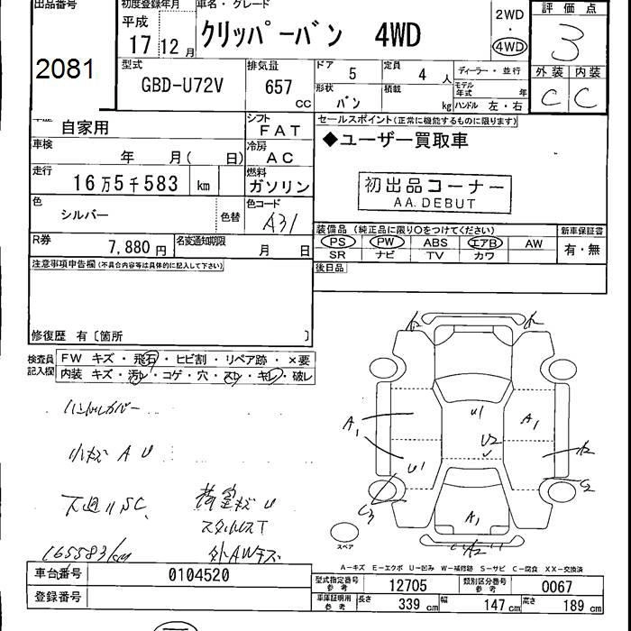 NISSAN CLIPPER VAN 2005 г., лот № 2081