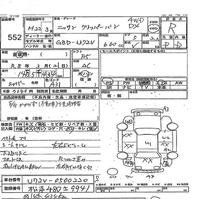 Год выпуска2010 Пробег 145 000 км КузовU72V Комплектация4WD DX