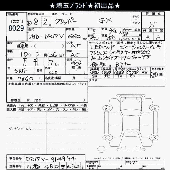 Статус выставлен на аукцион Лот 8029 Аукцион JU Saitama Дата аукциона 17.03.2026