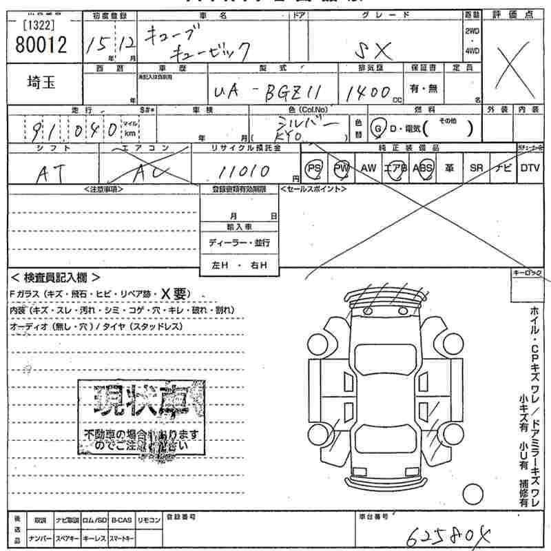 | SX | UA-BGZ11 | CR14DE | FF | CVT | 1386cc | 98ps(72kW)/5600rpm | AИ-92 | 1 446 000 | |
