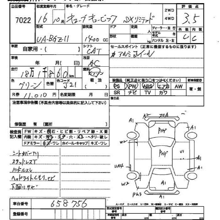 | EX | CBA-BGZ11 | CR14DE | FF | CVT | 1386cc | 98ps(72kW)/5600rpm | AИ-92 | 1 722 000 | |