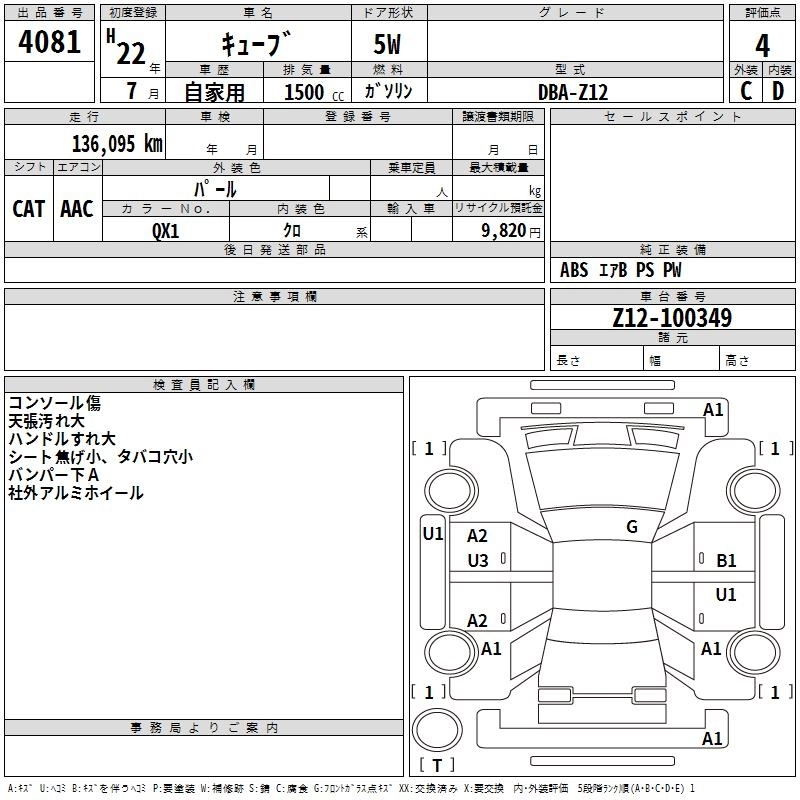 | 15S FOUR | DBA-NZ12 | HR15DE | Full-time 4WD | CVT | 1498cc | 109ps(80kW)/6000rpm | AИ-92 | 1 687 350 | |