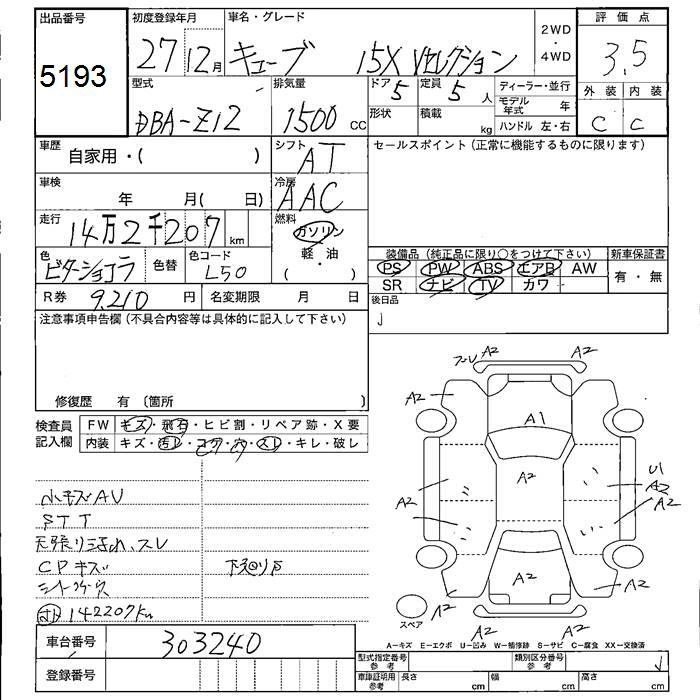 NISSAN CUBE 2015 г., лот № 5193