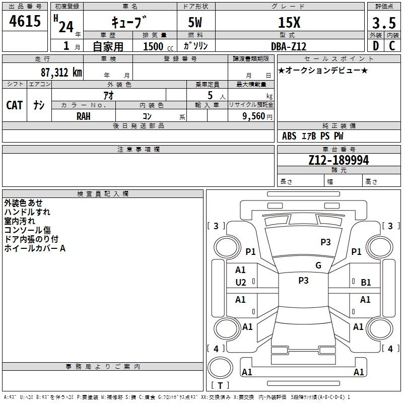 | AXIS | DBA-Z12 | HR15DE | FF | CVT | 1498cc | 111ps(82kW)/6000rpm | AИ-92 | 1 795 500 | |