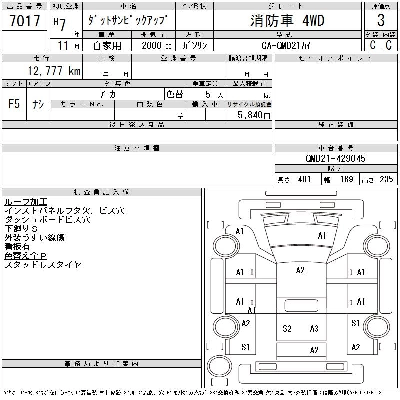 Год выпуска1995 Пробег 13 000 км КузовQMD21 Комплектация FIRE-SERVICE CAR 4WD