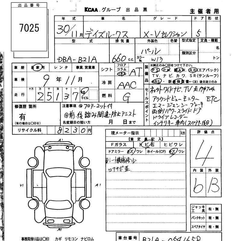 | X V SELECTION | DBA-B21A | 3B20 | FF | CVT | 659cc | 49ps(36kW)/6500rpm | AИ-92 | 1 501 200 | |