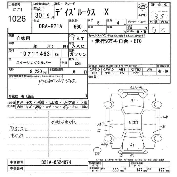 | X V SELECTION | DBA-B21A | 3B20 | FF | CVT | 659cc | 49ps(36kW)/6500rpm | AИ-92 | 1 501 200 | |