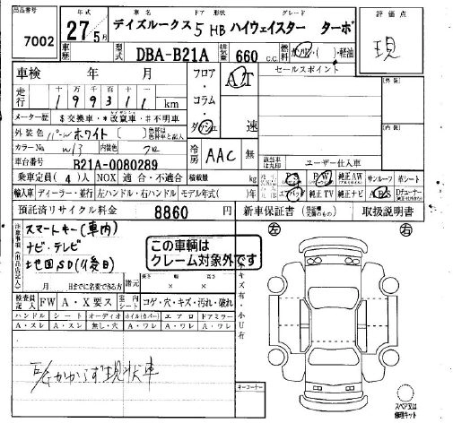| HIGHWAY STAR X V SELECTION | DBA-B21A | 3B20 | Full-time 4WD | CVT | 659cc | 49ps(36kW)/6500rpm | AИ-92 | 1 804 680 | |