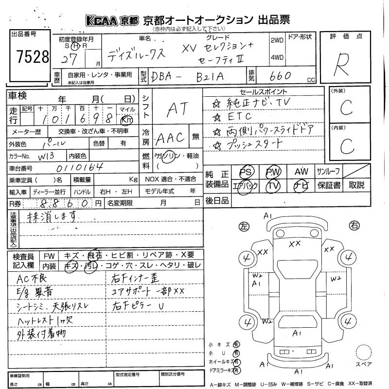 | X V SELECTION | DBA-B21A | 3B20 | Full-time 4WD | CVT | 659cc | 49ps(36kW)/6500rpm | AИ-92 | 1 620 000 | |